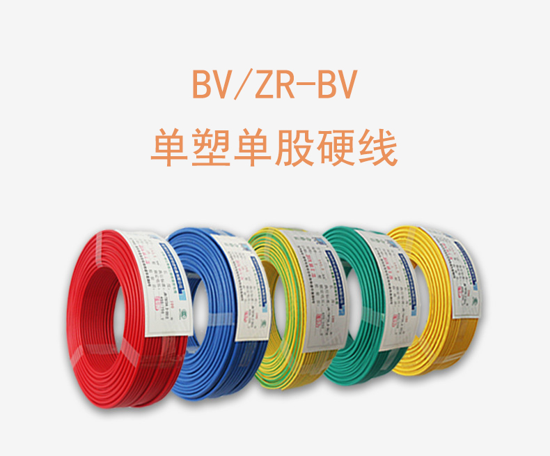 ZR-BV: 铜芯聚氯乙烯绝缘阻燃电线:绝缘料加有阻燃剂,离开明火不自燃.