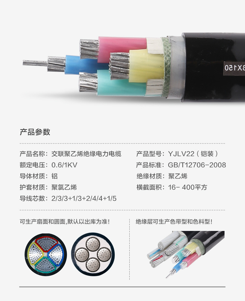 产品特性:电缆能承受机械外力作用,但不能承受大的拉力。