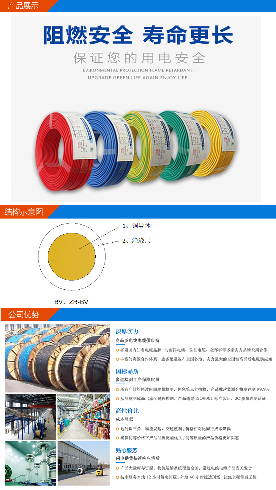 ZR-BV: 铜芯聚氯乙烯绝缘阻燃电线:绝缘料加有阻燃剂,离开明火不自燃.