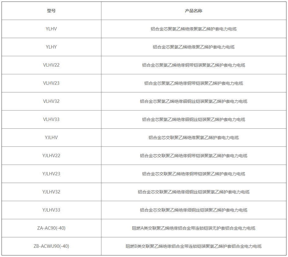 产品型号:YLHV、YJLHV、YLHV22、YJLHV22等等