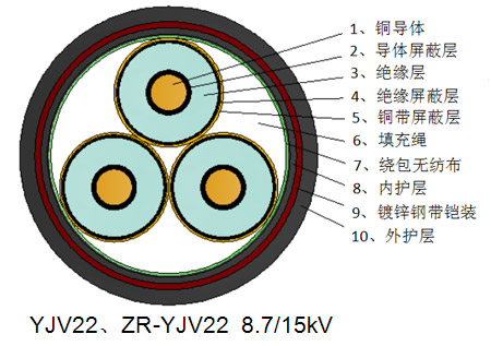 本产品适用于工频额定电压8.7/15kV及以下配电网或工业装置中固定敷设之用。可敷设于室内、隧道、电缆沟及地下直埋敷设。
