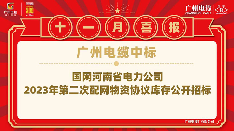 近日,广州工控属下广州电缆中标国网河南省电力公司2023年第二次配网物资协议库存招标采购项目,进一步深化与国家电网的合作。